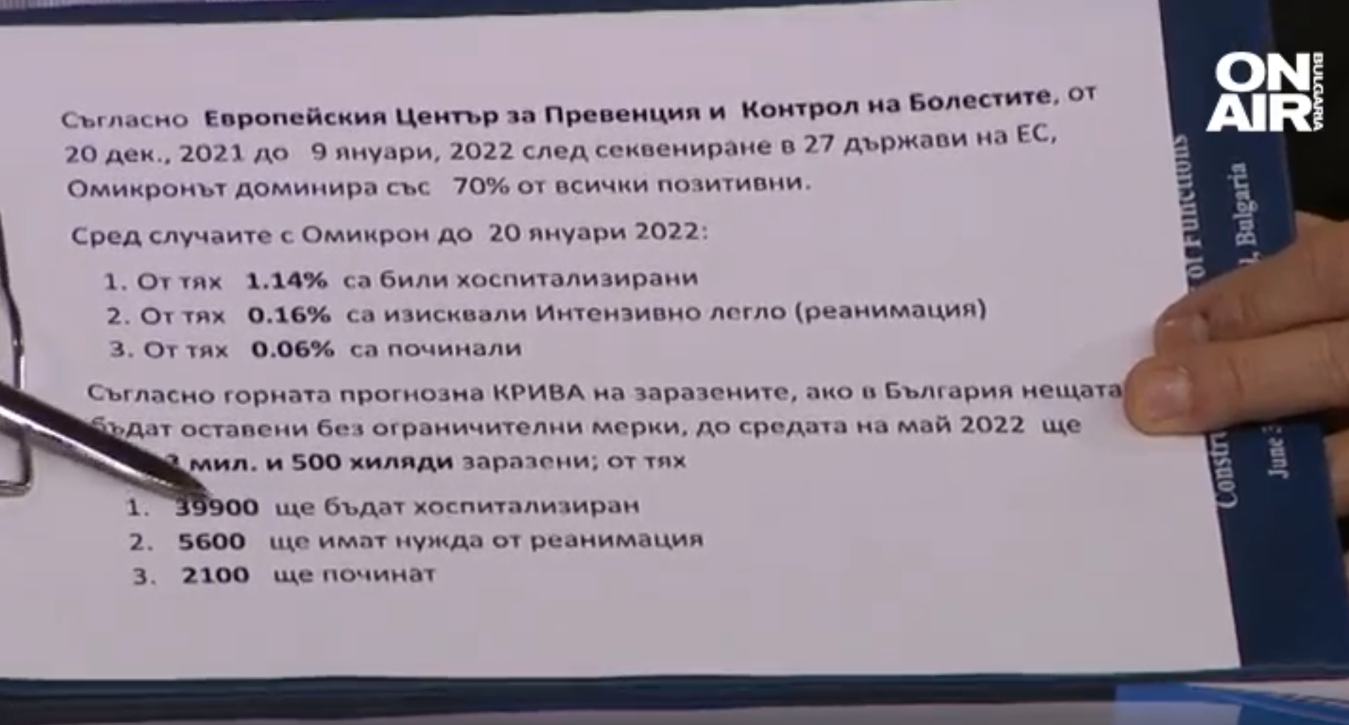 Според него рискът от постъпване в болница с Омикрон е 70% по-малък от този при Делта, а съотношението в смъртността е 1:10.