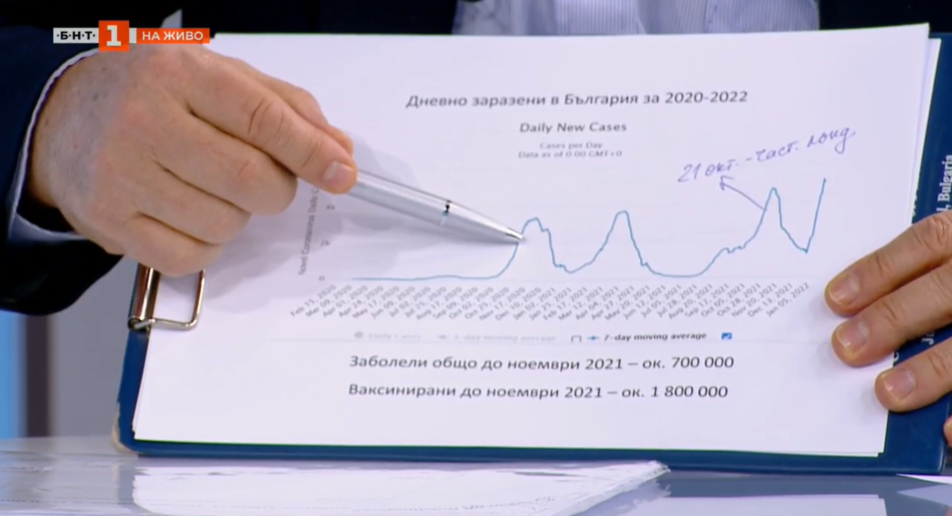 На въпрос относно прогнозите за високата заболеваемост ученият от БАН заяви, че това се дължи на варианта Омикрон, за който има сведения, че пробива 80% от ваксините и 80% от изградения след преболедуване естествен имунитет.
