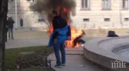 Извънредно! Жена се самозапали пред президентството! (обновена)
