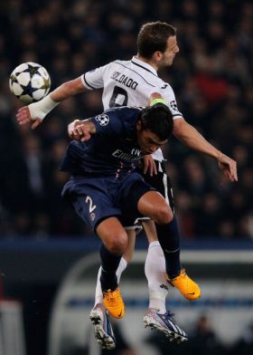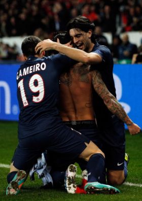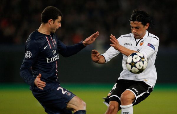 "Пари Сен Жермен" и "Валенсия" завършиха 1:1 в мач-реванш от осминафиналите на Шампионската лига. По този начин парижани, които бяха спечелили на "Местайя" с 2:1, се класираха на четвъртфиналите. Гола за испанците отбеляза Жонас Гонсалвеш в 55-ата минута с хубав удар извън наказателното поле, но в 66-ата Есекиел Лавеци изравни. До края Валенсия атакуваше, но защитата на ПСЖ не допусна никакви грешки и след 18 години френският тим отново е сред осемте най-добри в Европа. ПСЖ не можеше да разчита на голямата си звезда Златан Ибрахимович в този мач. Шведът си изкара червен картон в края на първия двубой и бе наказан за днешната среща. Марко Верати също бе наказан, а Жереми Менес е с  травма. В отсъствието на Ибра Карло Анчелоти заложи в предни позиции на Есекиел Лавеци и Лукас Моура. Хавиер Пасторе и Клемен Шантом действаха по двете крила, а двойката вътрешни халфове оформиха Блес Матуиди и Тиаго Мота. В защитата се завърна Тиаго Силва, докато Дейвид Бекъм бе сред резервите, но така и не влезе в игра. Наставникът на Валенсия Ернесто Валверде избра схема с един чист нападател в лицето на Роберто Солдадо. Зад него действаше Тино Коста, а по крилата атакуваха Софиан Фегули и Жонас Гонсалвеш. Големият проблем бе липсата на двамата титулярни централни защитници Рикардо Коща и Адил Рами. Началото на двубоя бе равнстойно. Противно на очакванията да играят предпазливо, домакините опитаха няколко интересни атаки, но макар и в много нетрадиционен състав, защитата на Валенсия се справи с тях. Първата добра възможност се откри пред Хавиер Пасторе. След фаул в половината на гостите топката стигна до аржентинеца, който побърза да шутира към Гуаита, но Антонио Бараган блокира удара му. Млако по-късно Жонас бе изведен през центъра и само навременната намеса на Кристоф Жале му попречи да открие резултата. След четвърт час игра Роберто Солдадо се измъкна от опеката на Тиаго Силва, но изстрелът му не затрудни Сиригу. В средата на полувремето Валенсия повече владееше топката, а ПСЖ разчиташе на дълги подавания към бързия Лавеци. Лоша новина за домакините дойде с контузията на десния бек Жале. Вместо него се появи Грегори ван дер Вийл. В още няколко ситуации през първата част Валенсия можеше да организира опасни акции, но в тях липсваше последният пас. Солдадо беше най-активен и при един от пробивите си намери връхлитащия Жонас, но неговият удар бе твърде неточен. Малко преди почивката бразилецът отново опита късмета си, но Сиригу боксира топката. Със старта на второто полувреме гостите се активизираха и по-напористата им игра бързо даде резултат. В 55-ата минута Жонас стреля силно извън наказателното поле и успя да завари неподготвен Сиригу - 0:1. При това положение ПСЖ все още беше в по-изгодна позиция, но още един гол за Валенсия щеше да обърка плановете на французите. Анчелоти реагира с офанзивна смяна и пусна Кевин Гамейро на мястото на Тиаго Мота. Нападателят веднага започна да тормози отбраната на Валенсия и изравняването не закъсня. В 66-ата минута Гамейро открадна топката от Даниел Парехо и влезе в наказателното поле. Подкрепилият го Лавеци стреля в тялото на Гуаита, но кълбото се върна в краката на аржентинеца и при втория си опит той не сбърка. След гола футболистите на Валенсия се насатниха трайно в половината на парижани, но повечето им атаки завършваха с центри