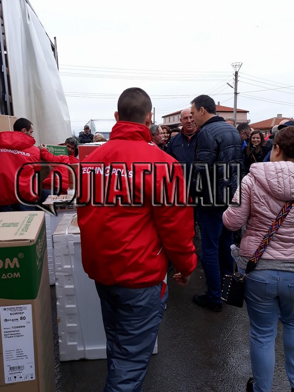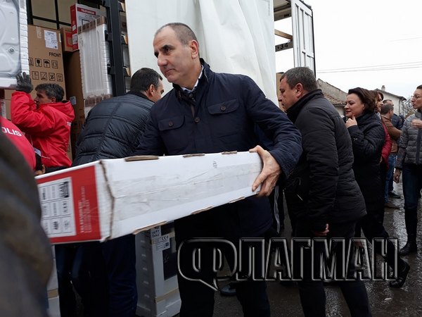ПЪЛЕН ЦИРК! Депутати и кметове на ГЕРБ разтоварват помощи за пострадалите семейства в Полски извор, местните гледат отстрани сеир (СНИМКИ)