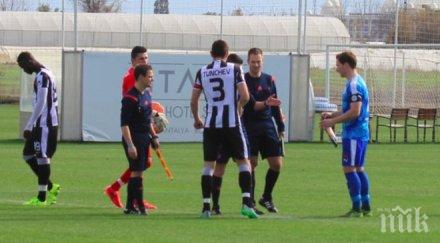 В 25-ата минута вратарят Витанов не успя да изчисти добре една топка и тя рикошира в ръката на нападателя на Яш Голубович, който след това я прати в мрежата. Реферът обаче отмени попадението заради фаул.
