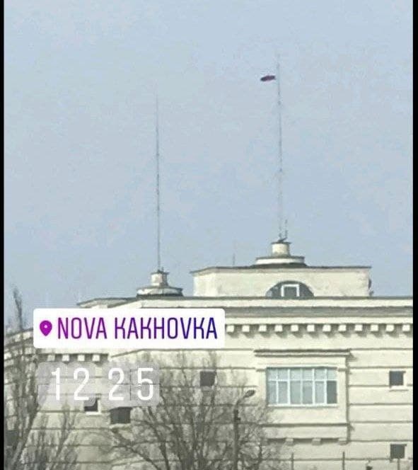 12:53 - Руският флаг се издига над ВЕЦ в град Каховка.