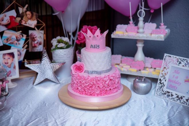 Партито преминало в типичното за малки госпожици розово. Съобразени с украсата били двуетажната торта с розова корона и курабийките с името на рожденичката. Бабите и дядовците се отчели с парични подаръци, но Алис получила и много играчки, вижда се от снимките.