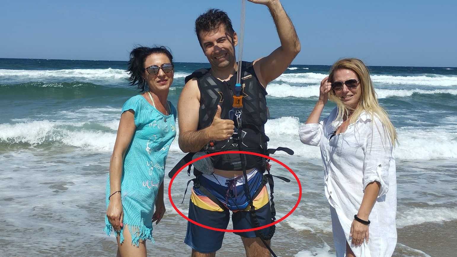 Спортната екипировка на Петков обаче загатна какво е нещото, заради което жените се лепят на Киро като мухи на мед. Обезопасителните препаски около чатала на депутата на ПП-ДБ очертата мъжкото му достойнство.