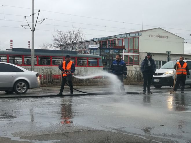 Водоноски са изпратени да разчистват столичния бул. Рожен, където по-рано тази сутрин стана жестока катастрофа, за която съобщи първо медията ни, предаде репортер на ПИК. Причината за жестокото меле е разсипан пресен бетон от бетоновоз, който е пътувал от надлез "Надежда" в посока Илиенци и не е спрял. В следствие на това са се ударили около 15 автомобила.