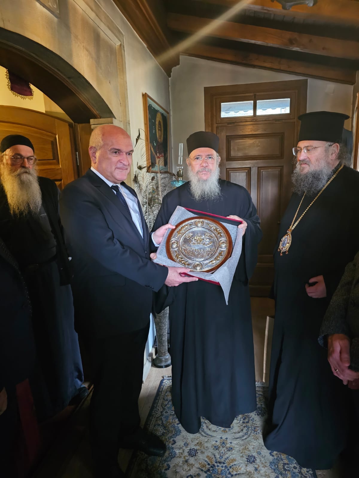 Придружени от гражданския губернатор на Света гора Анастасиос Мициалис, Негово Високопреосвещенство митрополит Григорий и министър-председателят Димитър Главчев, посетиха представителството на светогорския манастир "Есфигмен" в столицата на монашеската република Карея.