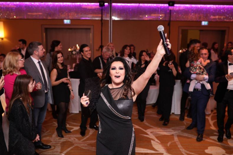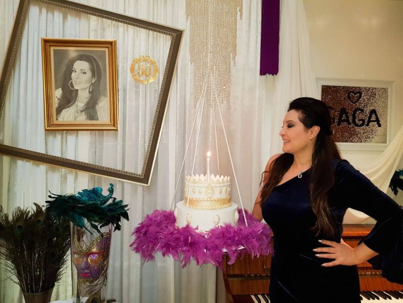 Залата, в която се състоя вечерята, бе декорирана с много пера и перли. Няколко дизайнерски торти бяга приготвени от австрийски сладкари за гостите. Естествено, рожденичката не издържа и дори на рождения си ден пя за своите любими хора.