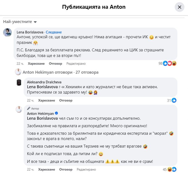 "Антоне, успокой се, ще вдигнеш кръвно! Няма агитация - прочети ИК и честит празник.