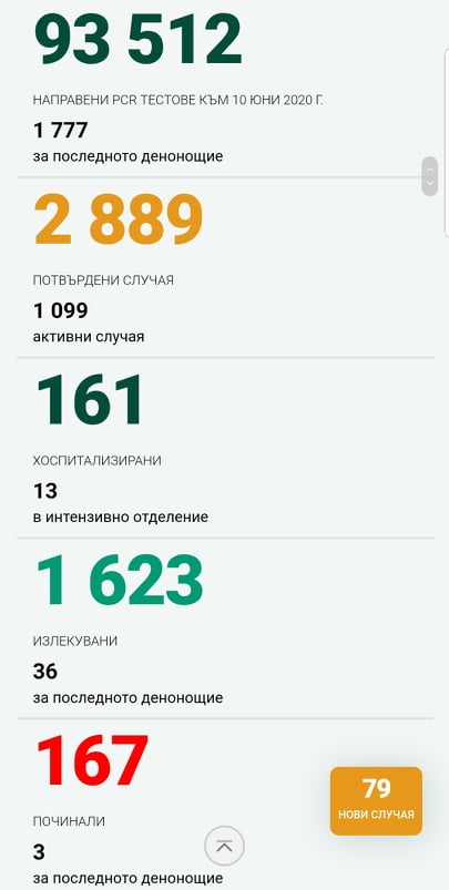 Според статистиката там новозаразените са 79. Изследвани са общо 1777 проби за денонощието.