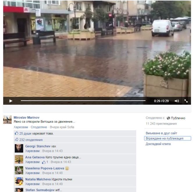 Нагли джигити превърнаха столичния булевард "Витошка" от пешеходна зона в оживен булевард. Възмутен гражданин снима как близо шест автомобила препускат по паветата пред смаяните погледи на пешеходци. Не е ясна каква е причината така нагло да бъдат потъпкани забраните за шофиране, но потребители в социалните мрежи изригнаха срещу своеволията на нарушителите.