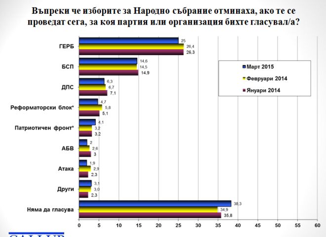 Това сочат данните от новото издание на Политическия и икономически индекс на „Галъп интернешънъл“ – независимото ежемесечно национално представително изследване, което се провежда от повече от 20 години. Последното изследване е проведено между 27 февруари и 4 март чрез пряко интервю по домовете сред 1011 души.