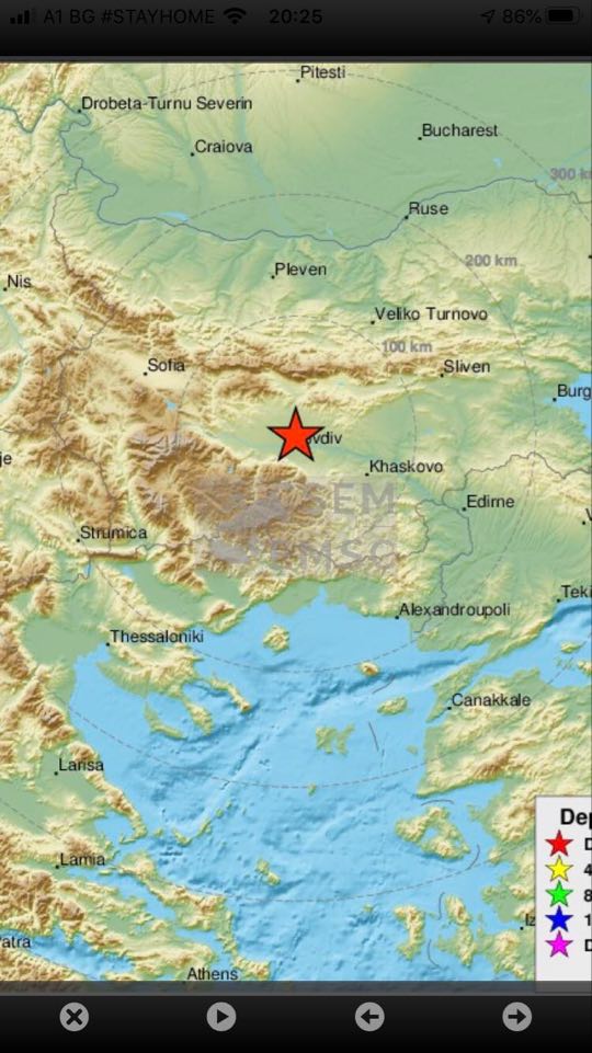 Епицентърът на земетресението е на 12 км от Пловдив и на 136 км от София, а дълбочината му е 2 км.