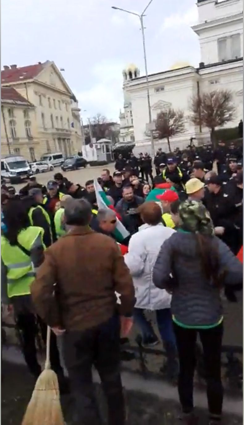 Събралите се 20 души пред сградата на Народното събрание се напънаха да привлекат вниманието, като се опитаха да блъскат и ругаят полицаите, които ги превъзхождат в пъти по численост. След като видяха, че дори и с тези си опити, няма да привлекат внимание и няма да успеят, хората с по една и две метли и облекли жълти жилетки се върнаха обратно, а част от тях се отказаха и си тръгнаха.