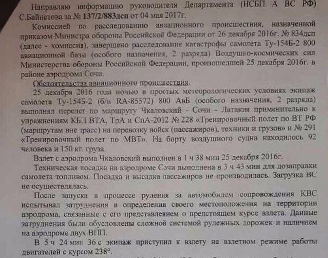 В мрежата бяха публикувани (все още неофициално) документите по разследването на жестоката катастрофа с Ту-154 над Черно море. Според информацията причина за тежкия инцидент е умора на екипажа.