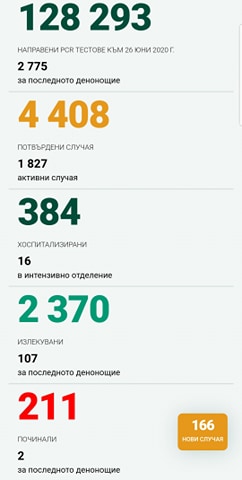 Активните случаи са 1 827, което също е ръст спрямо вчера. Това сочи справката на Единния информационен портал, обновен преди минути с данните от изследваните през вчерашния 25 юни, видя ПИК.
