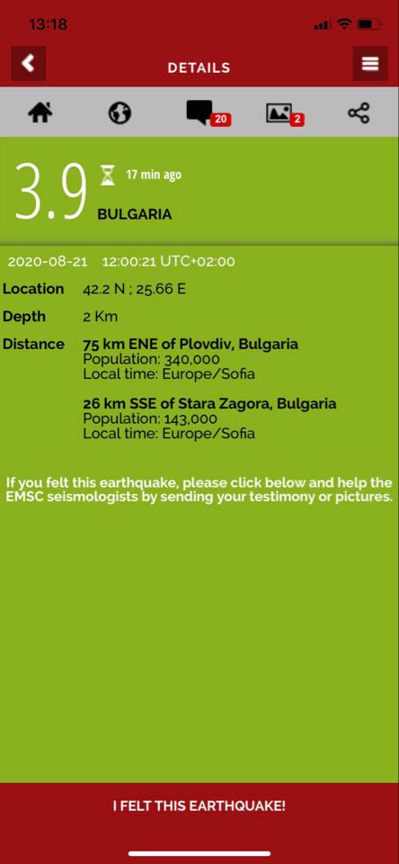 Жители на Димитровград сиигнализират, че трусът е бил кратък и шумен. Усетен е и по виските етажи в Стара Загора. "Леко разтресе, докато бях на леглото. За не повече от 2-3 секунди. Живея на петия етаж", съобщава жител на града на липите.