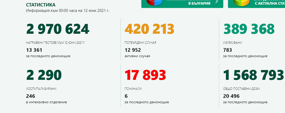 Общо потвърдените случаи са вече 420 213, от които активни са 12 952.