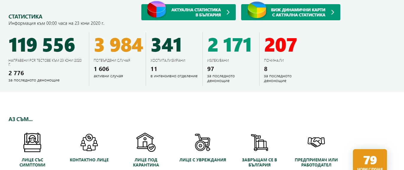 Активните случаи са 1 606. Това сочи справката на Единния информационен портал, обновен преди минути с данните от изследваните през вчерашния 22 юни, видя ПИК.