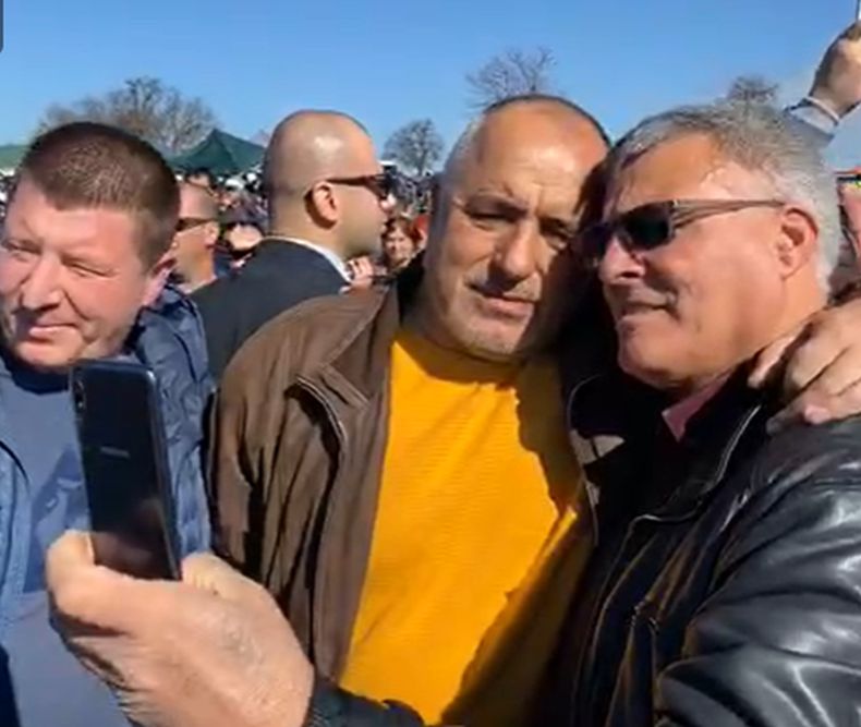 Премиерът Бойко Борисов празнува Тодоровден в шуменското село Пристое.  Стотици хора се тълпят да се снимат с него. Млади хора му целуват ръка и му благодарят.