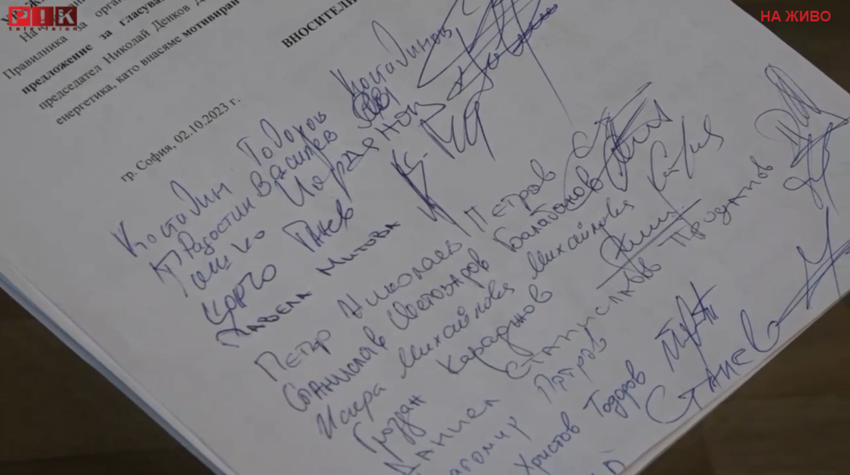 Документът е подписан от Костадин Костадинов, Радостин Василев, Цончо Ганев, Тошко Йорданов, Павела Митова, Петър Петров, Станислав Балабанов, Искра Михайлова, Гроздан Караджов, Даниел Проданов и др.