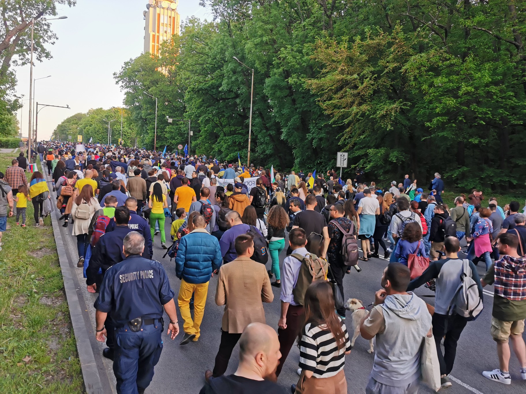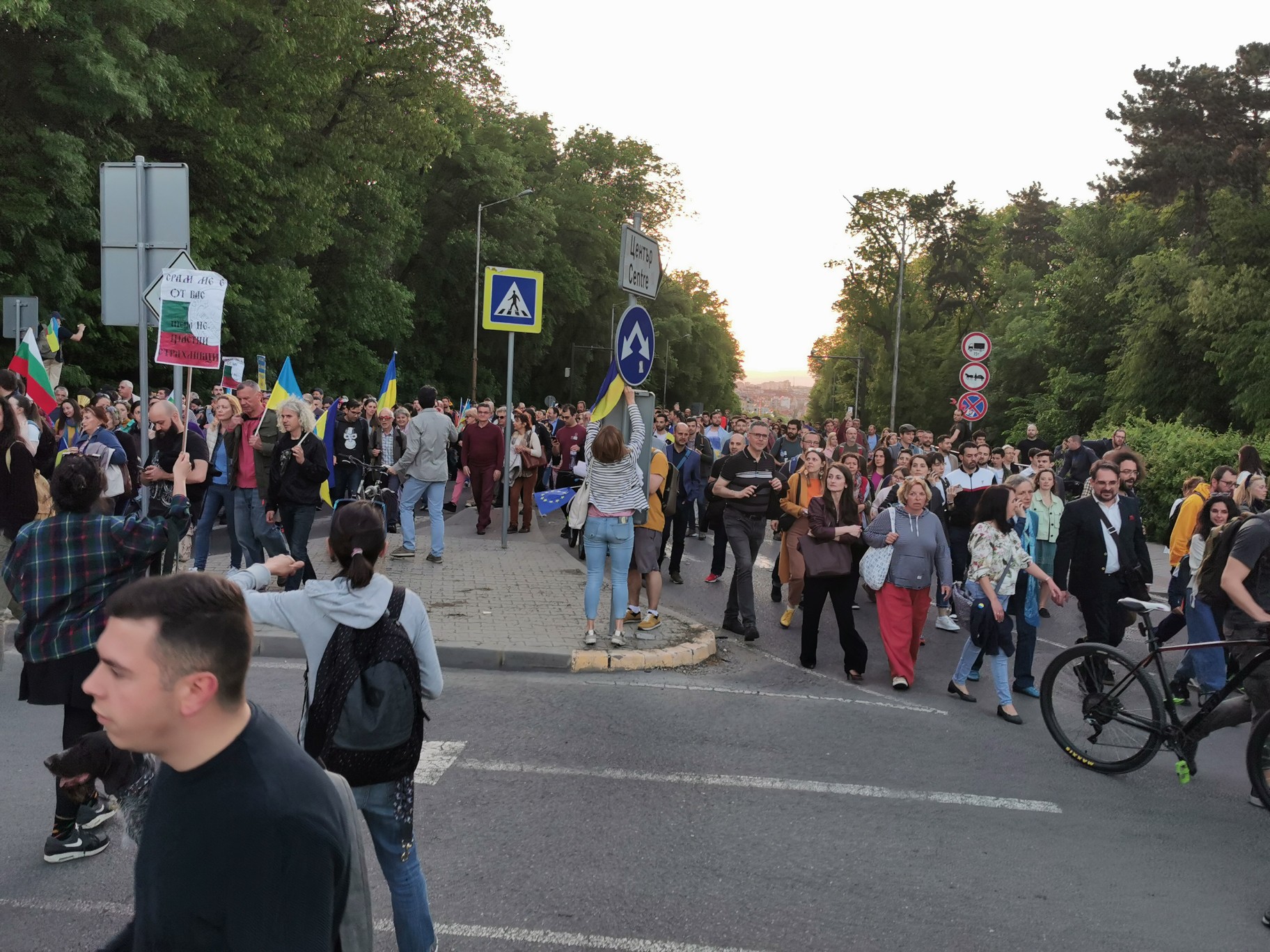 Обявена за тази вечер демонстрация срещу руската агресия тръгна от центъра на София. Поход е обявен за свобода и мир. Шествието се събира на площад "Независимост" и се отправи към сградата на руското посолство, където е и в момента.