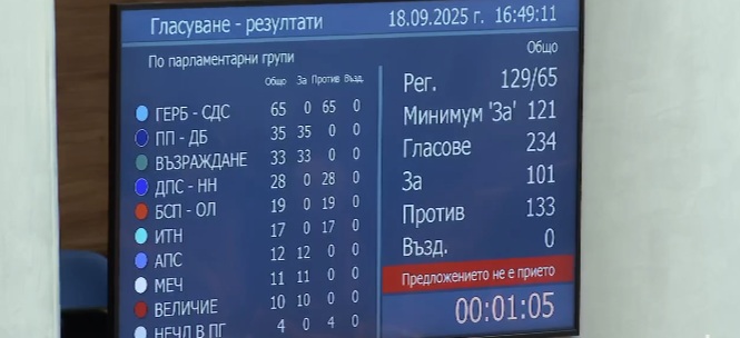 Гласуваха 234 народни представители, 101 бяха "За", 133 "Против", въздържали се нямаше. Вотът не бе приет.