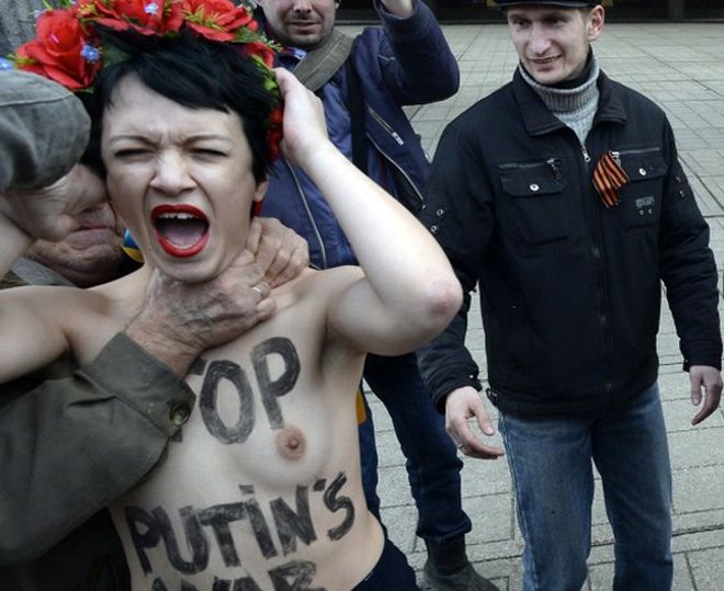 Освен предстоящите санкции, с които останалите страни го заплашват, той може да се похвали и с агресията на разгневените феминистки от "Фемен".