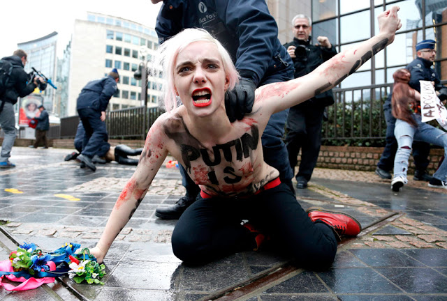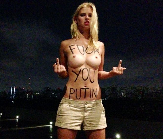 Разгневени феминистки от цял свят с гол и нецензурен "поздрав" към Путин (снимки 16+)