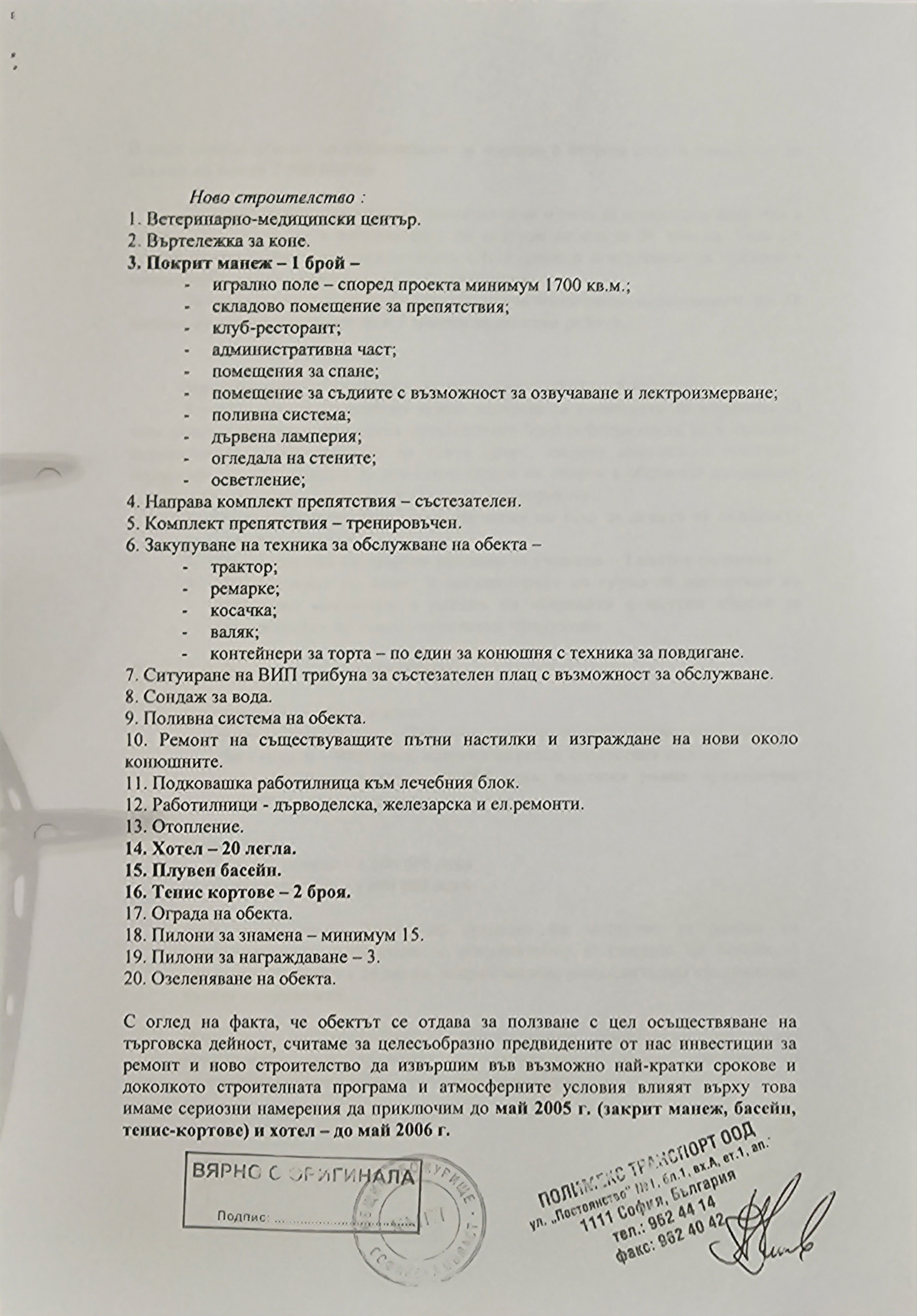 Странното е, че въпреки че не е изпълнен, договорът продължава да бъде в сила и концесионерът експлоатира конната база като заплаща символичната концесионна такса в размер на 15 000 лева на година за общинския имот, който е само на 15 километра от идеалния център на София.