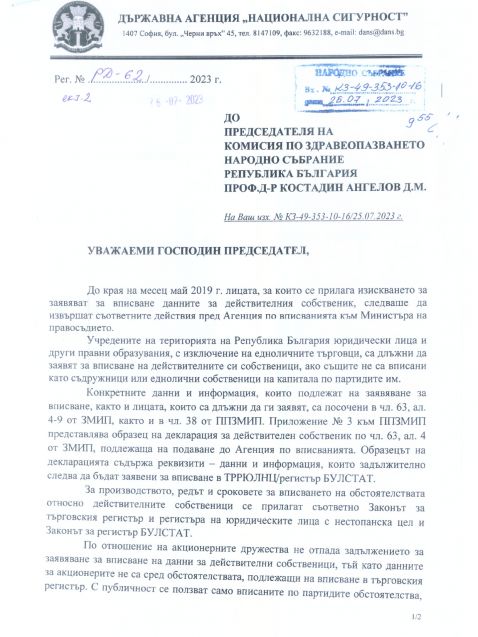 Днес обаче от ДАНС опровергават това негово твърдение. В свое писмо, качено на сайта на Народното събрание, агенцията пише, че никога не е получавала документ от Станимир Михайлов.
