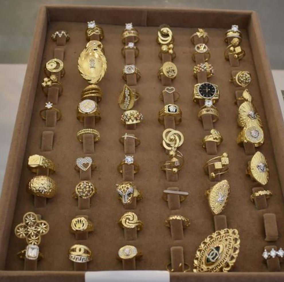 На адреса са намерени 591 броя накити от жълт метал, различни артикули - пръстени, гривни, огърлици, обеци, диадеми, с тегло около 3119 грама, мобилни телефони, товарителници за изпратени пратки по куриерски фирми и пари - обща сума 5495 лева, 80 евро и 160 турски лири.