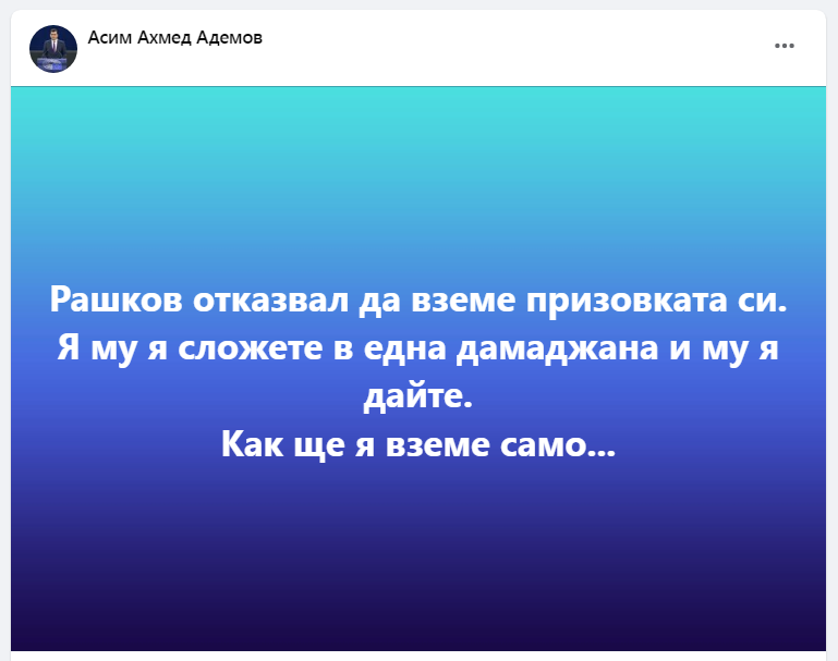 Социалната мрежа взе на подбив историята с призовката на Рашков, а евродепутатът от ГЕРБ Асим Адемов написа на страницата си във Фейсбук:
