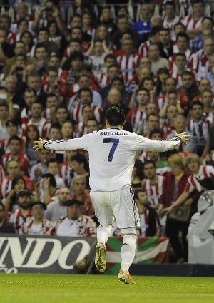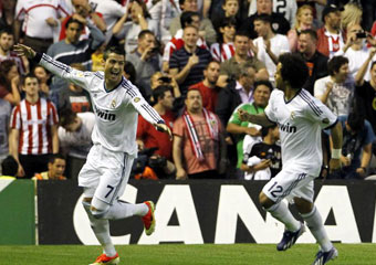 Едва след минута и малко игра първият гол вече беше на сметката на гостите от "Сантиаго Бернабеу". Кристиано Роналдо завъртя по прекрасен начин топката над стената, придаде необходимата сила и от 25 метра прониза вратата на Горка Ираисос. През първия половин час "лъвовете" на Марсело Биелса владееха топката в съотношение 3:2 със своя съперник (60 процента срещу 40).