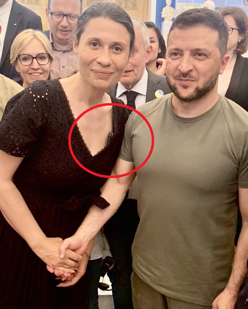 РЕЗИЛ: Вижте какво вкара в сутиена си Летящата Козила Ерато, за да се щракне с Володимир Зеленски (СНИМКА)