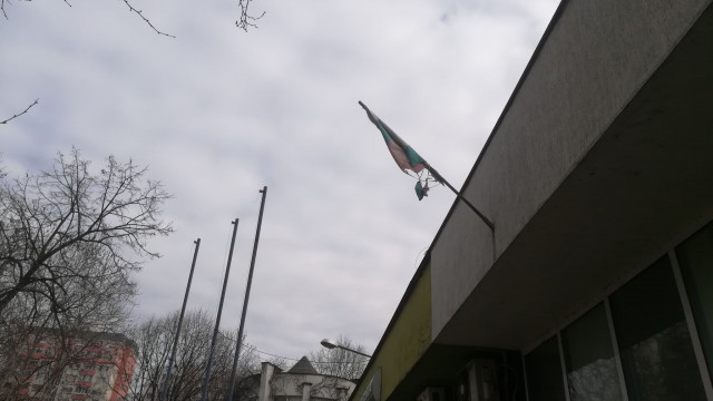 Разкъсан парцал, който някога е бил национален флаг, се вее над пощенския клон в хасковския квартал "Орфей“.
