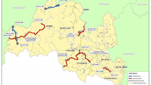 Планиран за основен ремонт е и пътя от Девин към Доспат, който е в окаяно състояние на много места, а по програмата за текуща поддръжка е заложено да бъде рехабилитиран пътя Доспат – Батак.