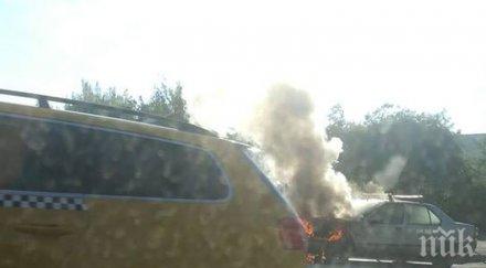 ОГНЕН АД В СОФИЯ! Кола пламна на пътя в "Младост 4" (СНИМКА)