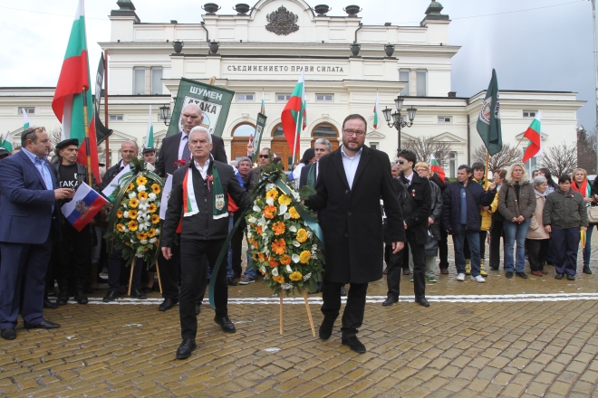 След митинга Сидеров и Валуев поднесоха венци пред паметника на цар Освободител до Народното събрание.
