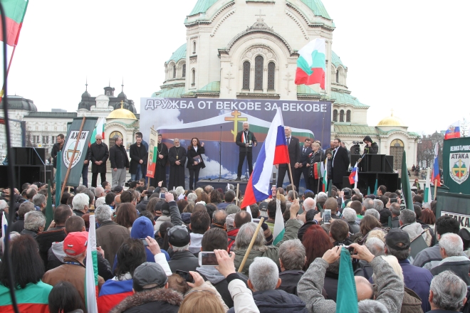 То тръгна от пилоните на НДК след 12:00 ч., водено от Сидеров и народните представители от партията под наслов „България-Русия дружба от векове за векове“. Хиляди патриоти застанаха под знамената на АТАКА и с възрожденски песни тръгнаха към храм-паметник „Свети Александър Невски“. Атакисти свалиха знамето на Европейския съюз от пилоните до Двореца на културата, което предизвикаха бурните аплодисменти на множеството.