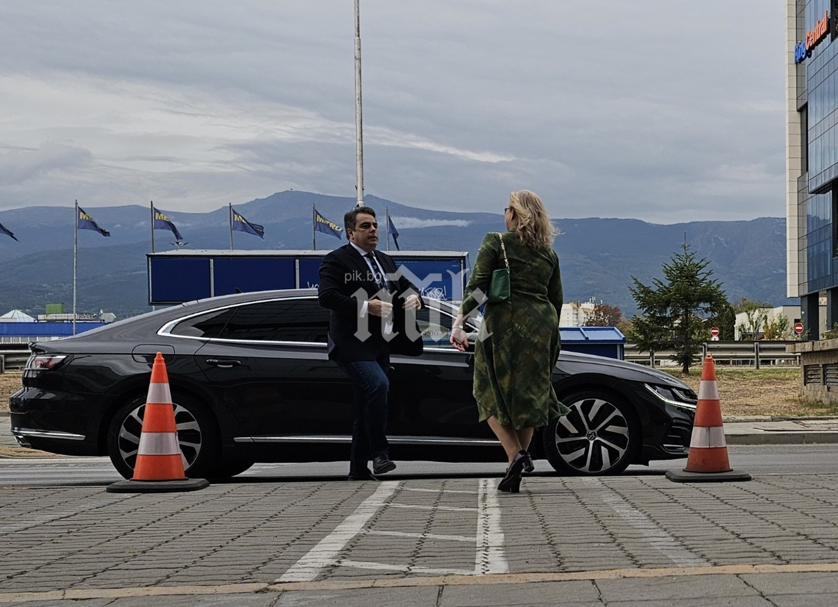В същото време с подобни почести не бе посрещнат доскорошния съпредседател Кирил Петков. Бившият премиер пристигна за събитието с черния си джип "Лексус" и се принуди сам да помести конусите на тротоара, за да си освободи място за паркиране.