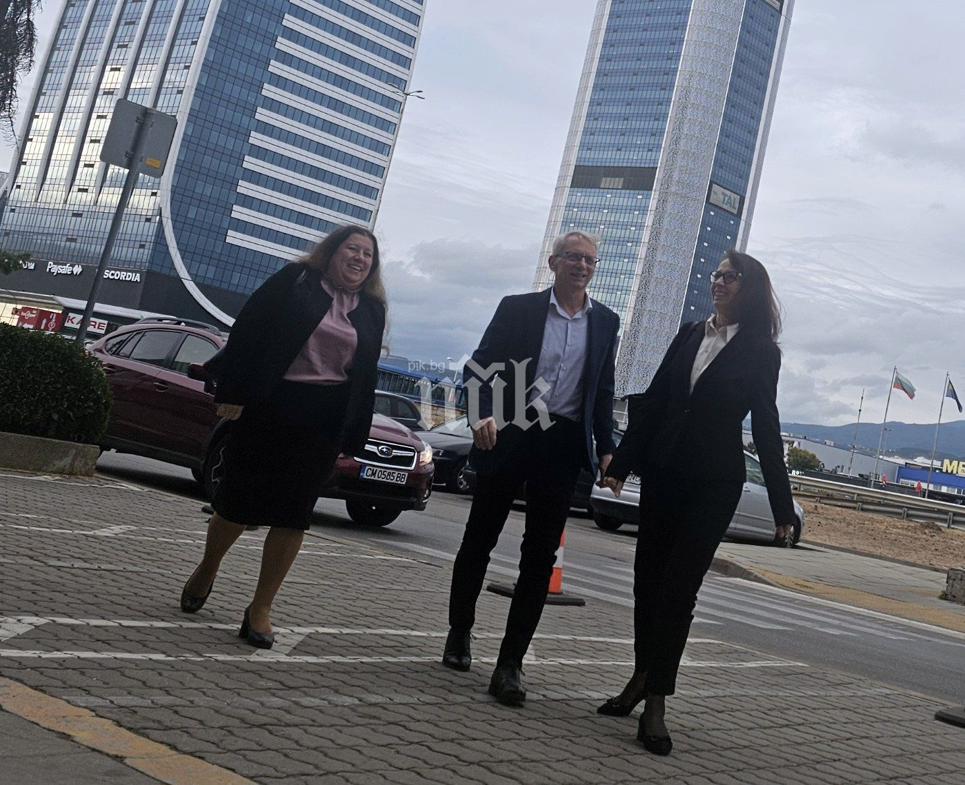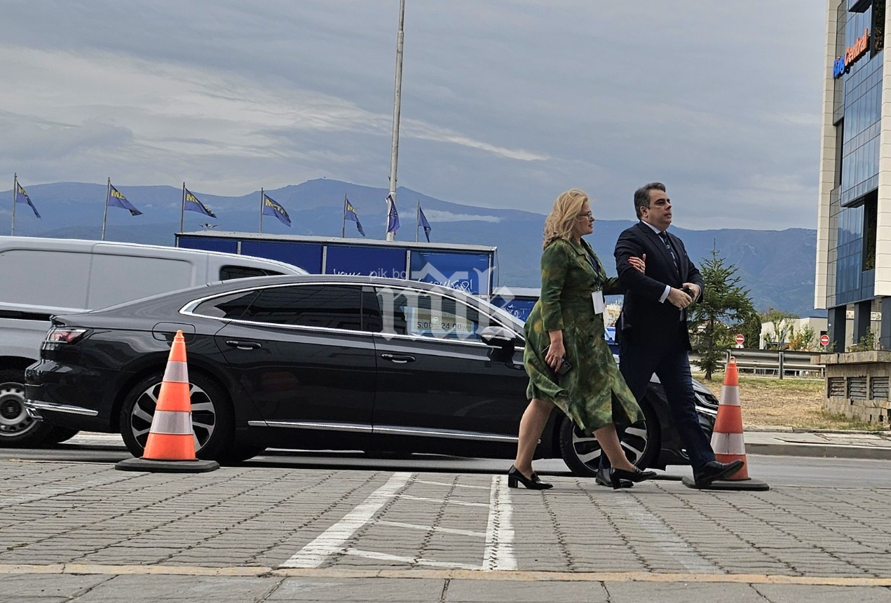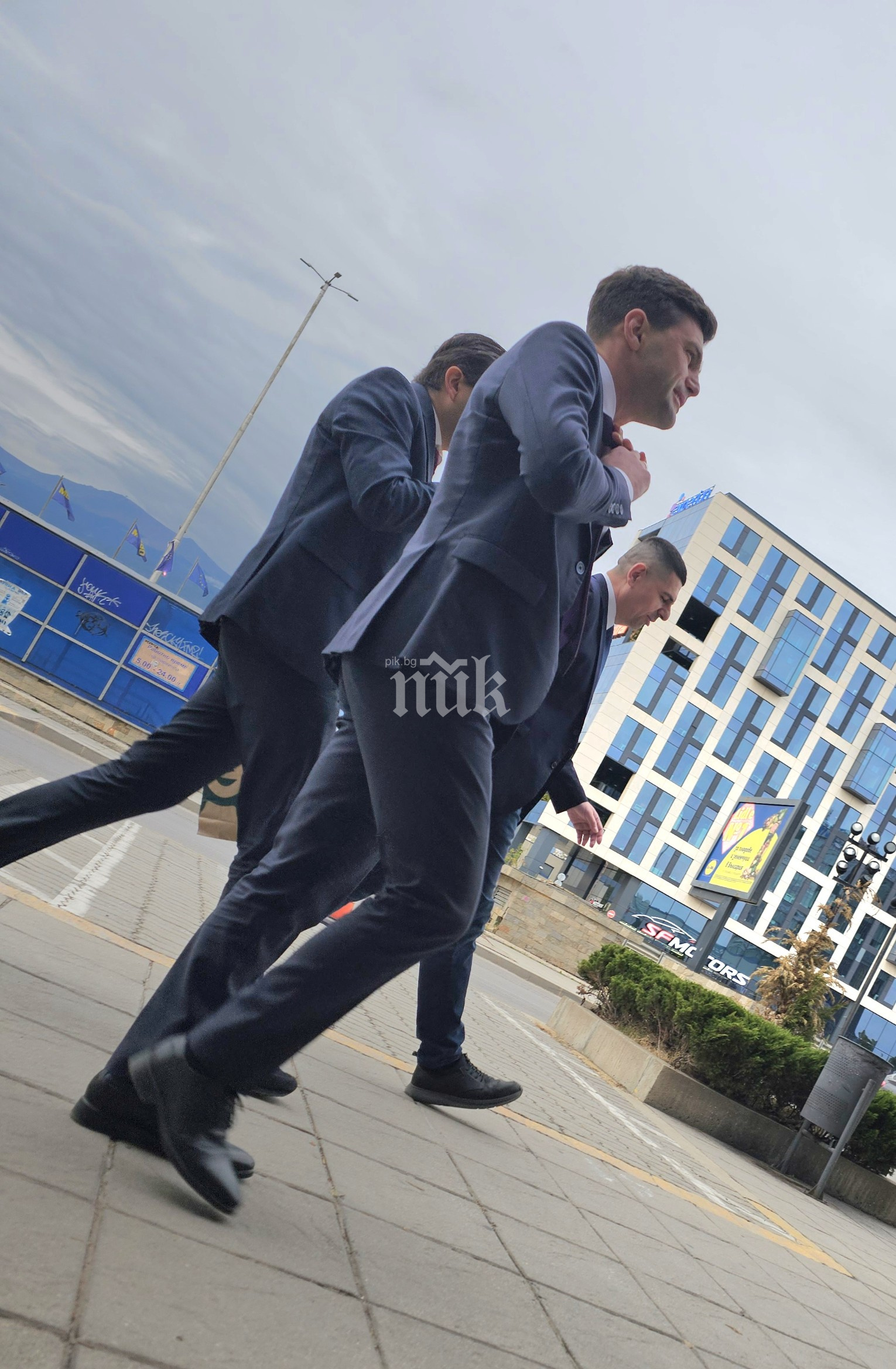 С бодра крачка двамата се насочват към входа на "Интер експо център".