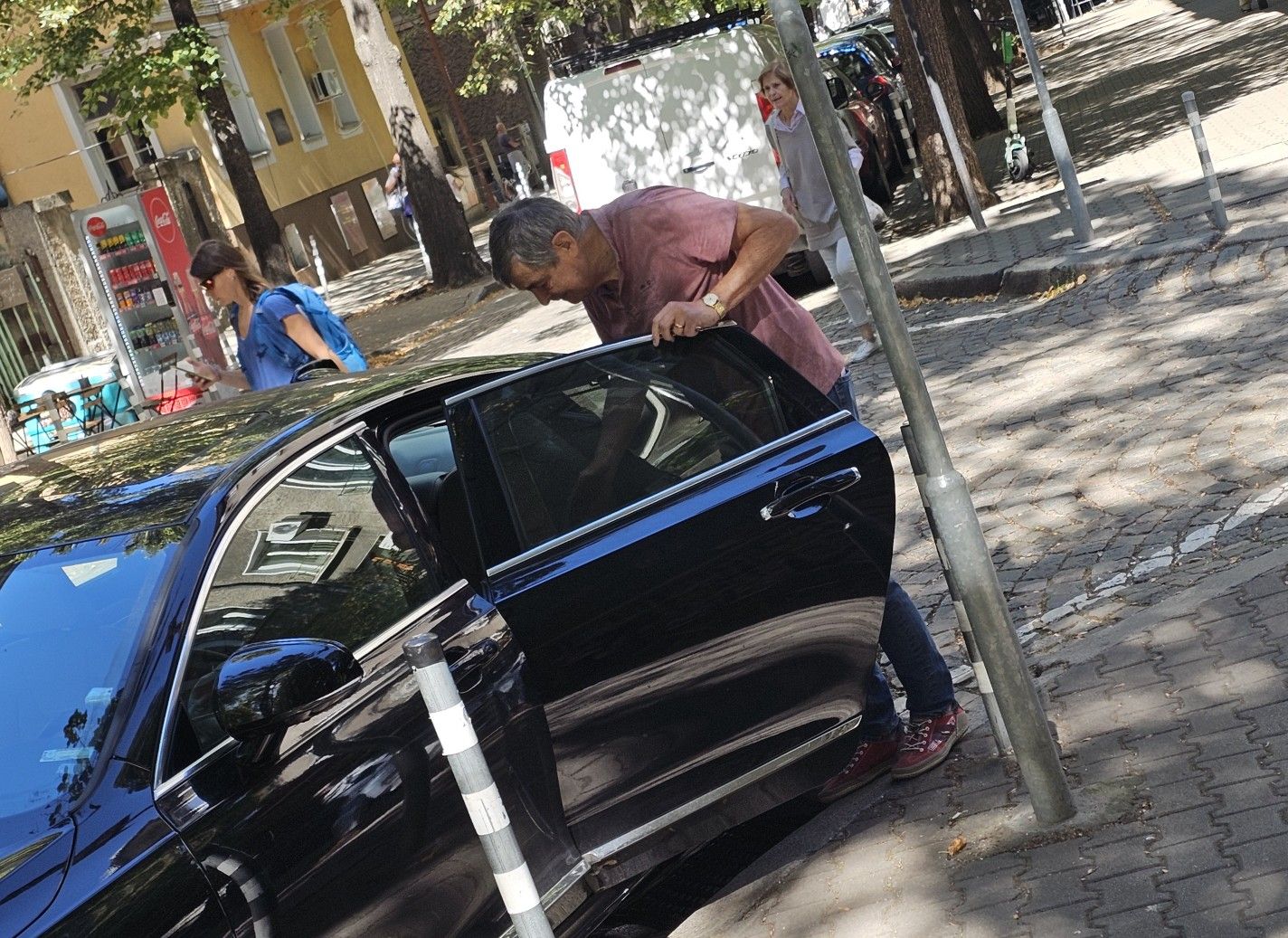 Преди това бившият кмет дълго се въртя около автомобила, търсейки нещо и отваряйки една по една вратите. Накрая метна чантичка през рамо и се насочи съм домашното гнездо.