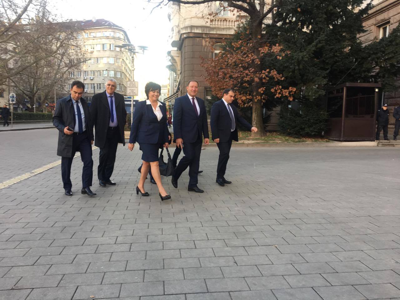 Лидерът на БСП Корнелия Нинова пристигна на консултация с президента Росен Плевнелиев. Тези срещи са иницирани от Плевнелиев с идеята някоя от големите партии да се съгласи да състави правителство, за да може да се излезе от политическата криза, която ни очаква до предсрочните парламентарни избори.