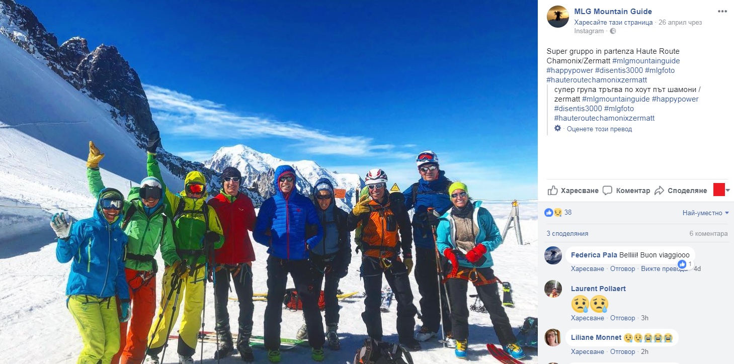 Именно Марио Кастильони е бил водач на групата, която е трябвало да достигне до швейцарския град Цермат. На страницата си във Фейсбук Кастильони е публикувал снимка на цялата група на 26 април.