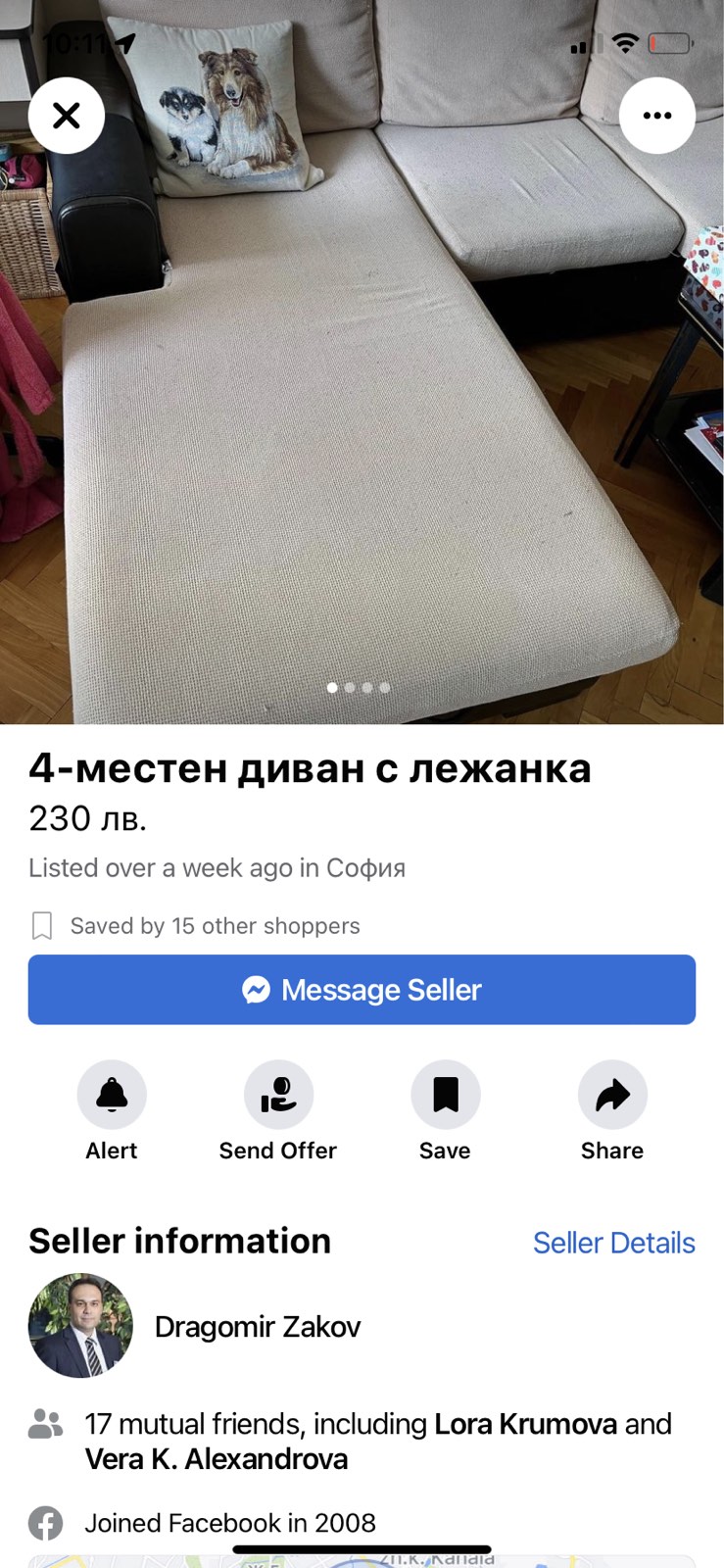 Там Заков обяви продажбата на четириместен диван с лежанка, чиято снимка публикува заедно с възглавничката с кученце на нея. Цената, която бившият български представител в НАТО е обявил за дивана е 230 лева, което означава, че той или е много стар, или силно увреден.
