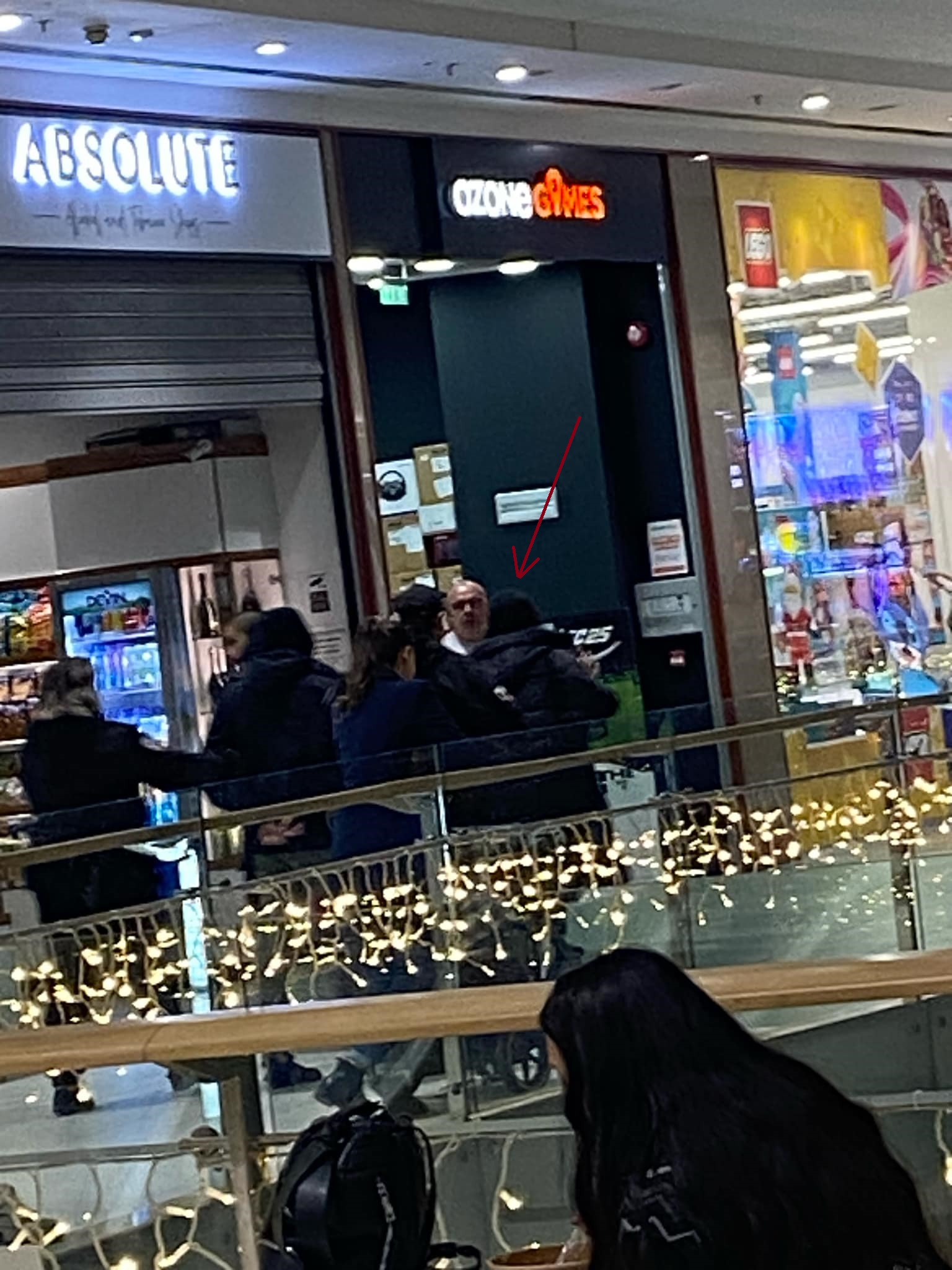 В четвъртък, екип на ПИК засече охранители, които водят младеж с черна качулка покрай магазините и през ескалаторите до първия етаж.