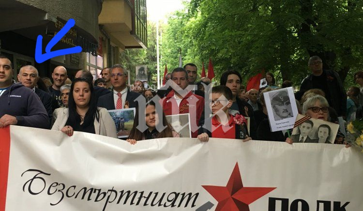 Снимки от различни години в Стара Загора, които основно са от чествания на 9 май, разкриват Гьоков като носител на "Георгиевската лента". Настоящият министър не пропуска да се накичи с нея навръх руския празник, като за капак държи и червено знаме.