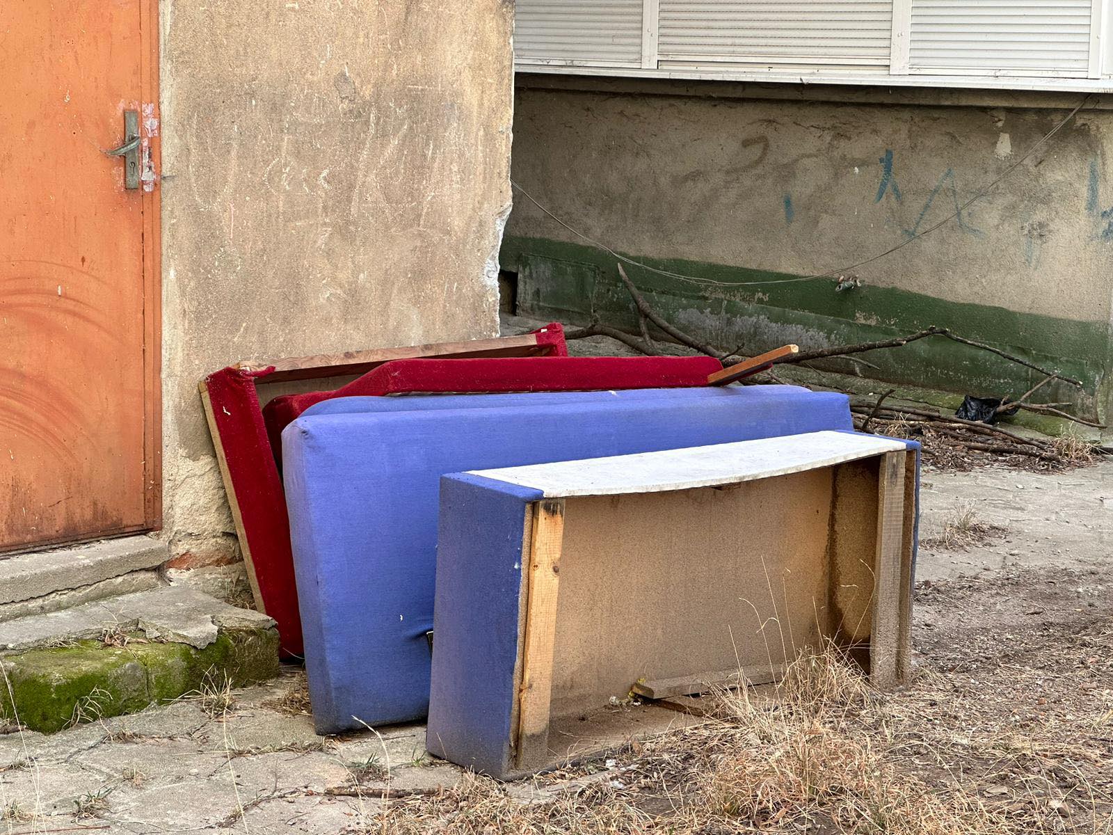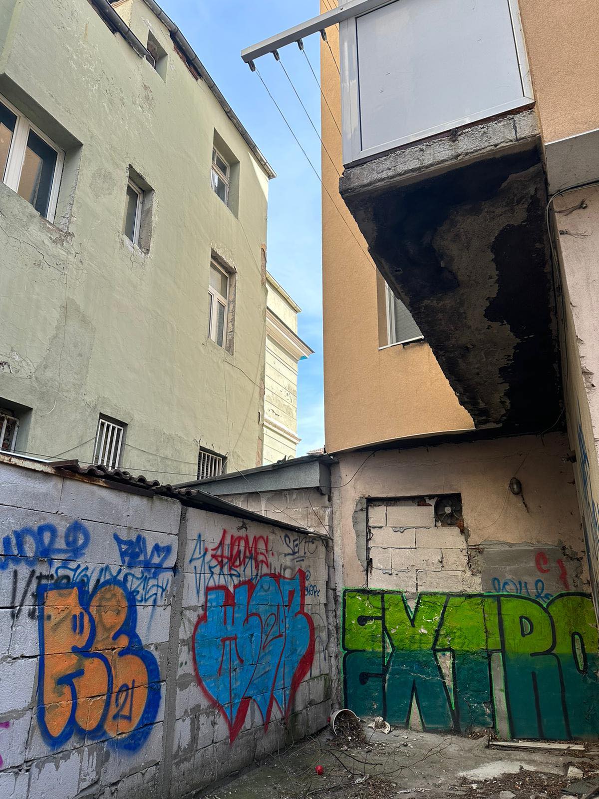 Задният двор на сградата, в която живее бившият премиер Кирил Петков е запуснат и боклучав - във вида, в който остави държавата след 7-месечното си управление.
