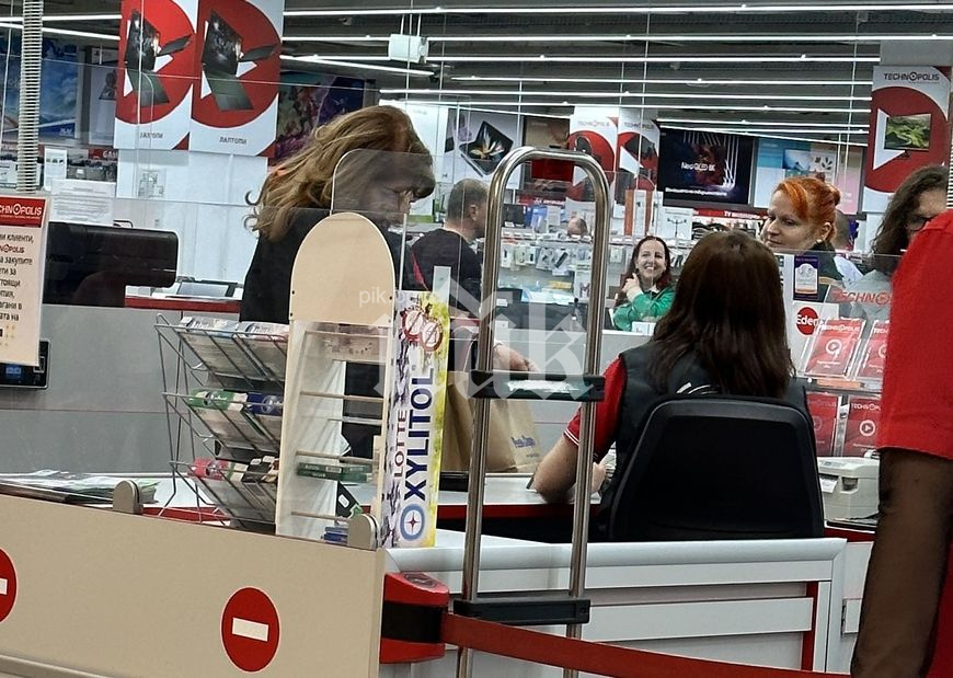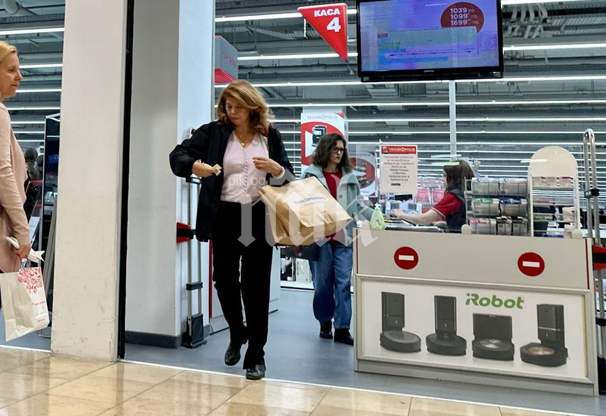 Възползвайки се от приятния шопинг извън работните задължения, Илияна Йотова не пропусна да влезе и в голям магазин за техника.